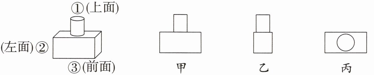 4. 观察图形,从位置①看到的是图( ),从位置②看到的是图( ),从位置③看到的是图( )。(填“甲”“乙”或“丙”)