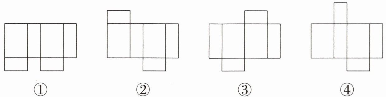 5. 下面的图形能折成长方体吗? 想一想,把相应的序号填在括号里。