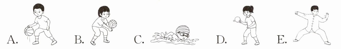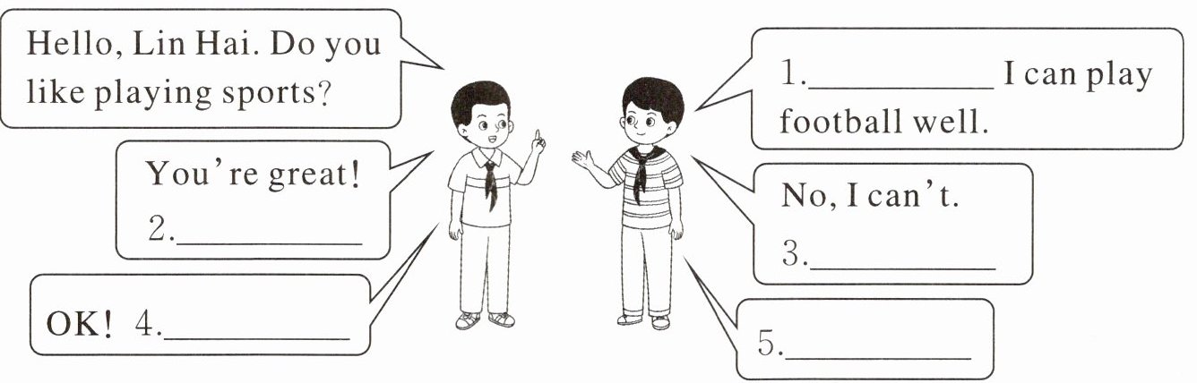 四、林海和朋友正在谈论喜欢的运动。请你联系上下文,从方框中选择恰当的句子补全对话,并将其字母标号填在相应的横线上。