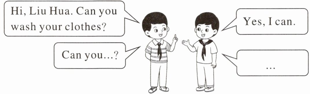做家务不仅能让我们体验劳动的快乐,还能让家庭更和谐。请参考下面的对话,了解你的同学会做哪些家务,并把结果记录在表格里。