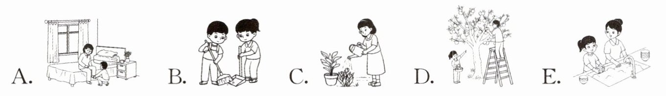 三、图文匹配。请根据下列描述选择与其意思相符的图片,并将其字母标号填入题前括号内。
