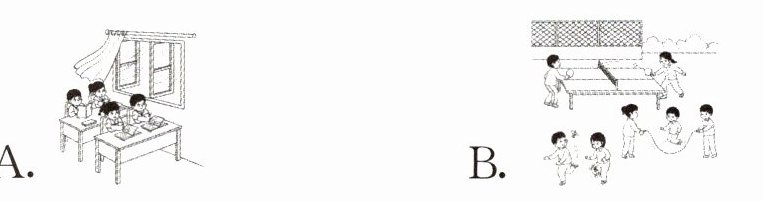 一、听句子,选图片。请选出与你听到的句子意思相符的图片,并将其字母标号填入题前括号内。每小题读两遍。