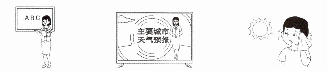 三、听句子,请判断下列图片与你听到的句子内容是否相符,相符的在括号内写“T”,不相符的写“F”。每小题读两遍。