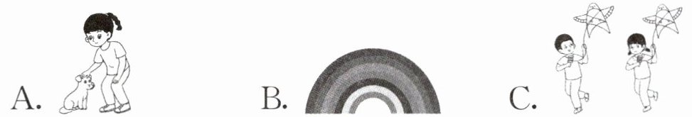 【任务二】下面哪一幅图是琳达在星期日下午画的图画?请将其字母标号填入题前括号内。