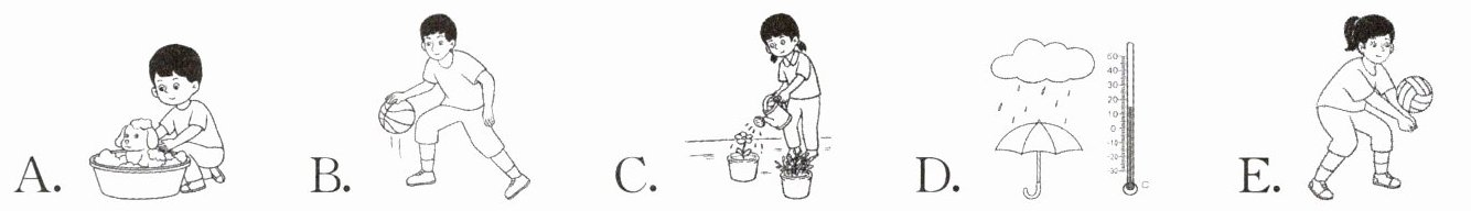 三、图文匹配。请根据下列描述选择与其意思相符的图片,并将其字母标号填入题前括号内。