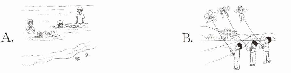 ( )3. I like ______(A. swimming B. playing) in the sea.