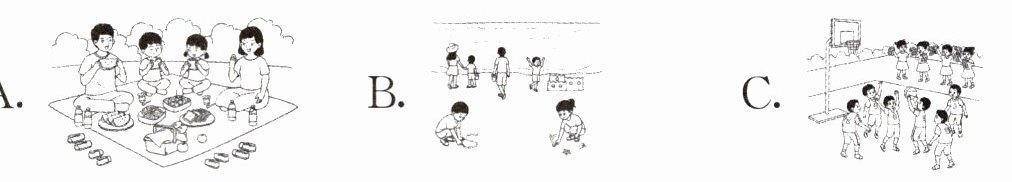 四、听对话,选图片。请根据你听到的对话内容,选出相应的图片,并将其字母标号填入题前括号内。每段对话读两遍。