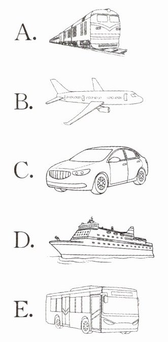 二、找出与句子意思相符的图片,并将其字母标号填入题前括号内。