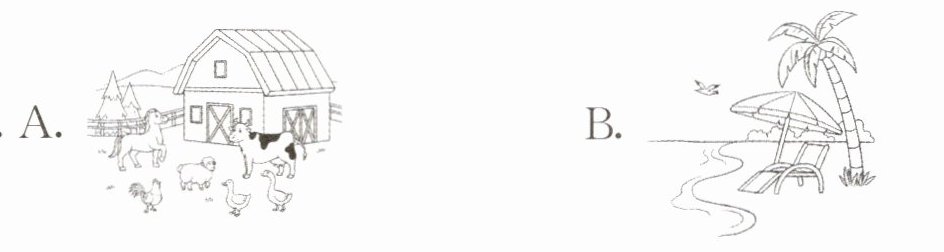 一、听句子,选图片。请选出与你听到的句子意思相符的图片,并将其字母标号填入题前括号内。每小题读两遍。