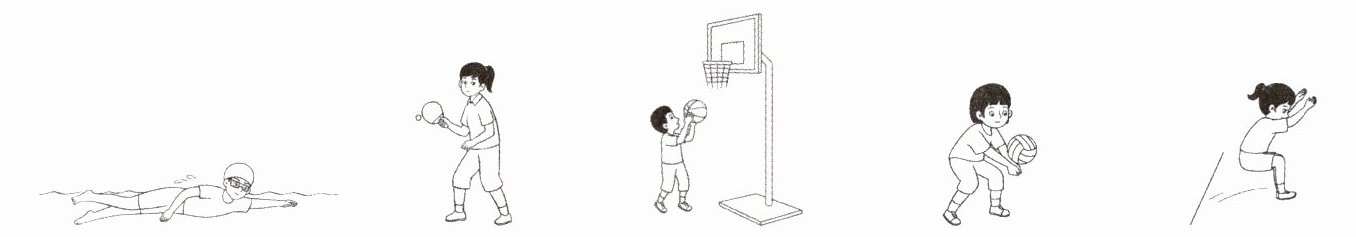 | Name | play ping - pong | play volleyball | play basketball | jump | swim | run |