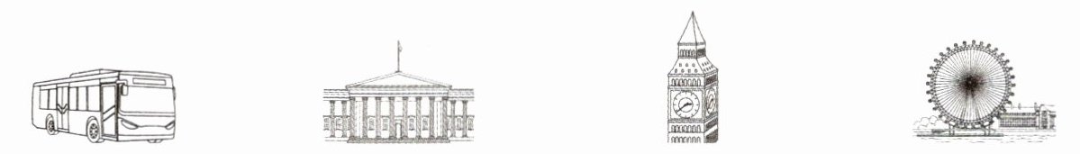 二、看图,认短语。请根据所给图片,选出与其相对应的短语,并将其字母标号填在括号中。