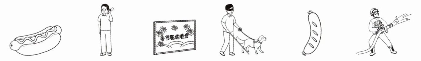 二、看图,认单词和短语。选出与图片对应的单词或短语,并将其字母标号填在括号中。