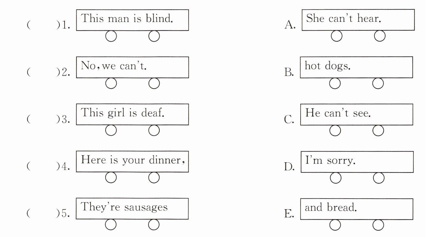 五、请把断开的车厢连起来,将其字母标号填在括号中。