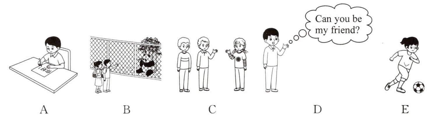 二、图文匹配。请根据下列描述选择与其意思相符的图片,并将答案的字母标号填在括号中。