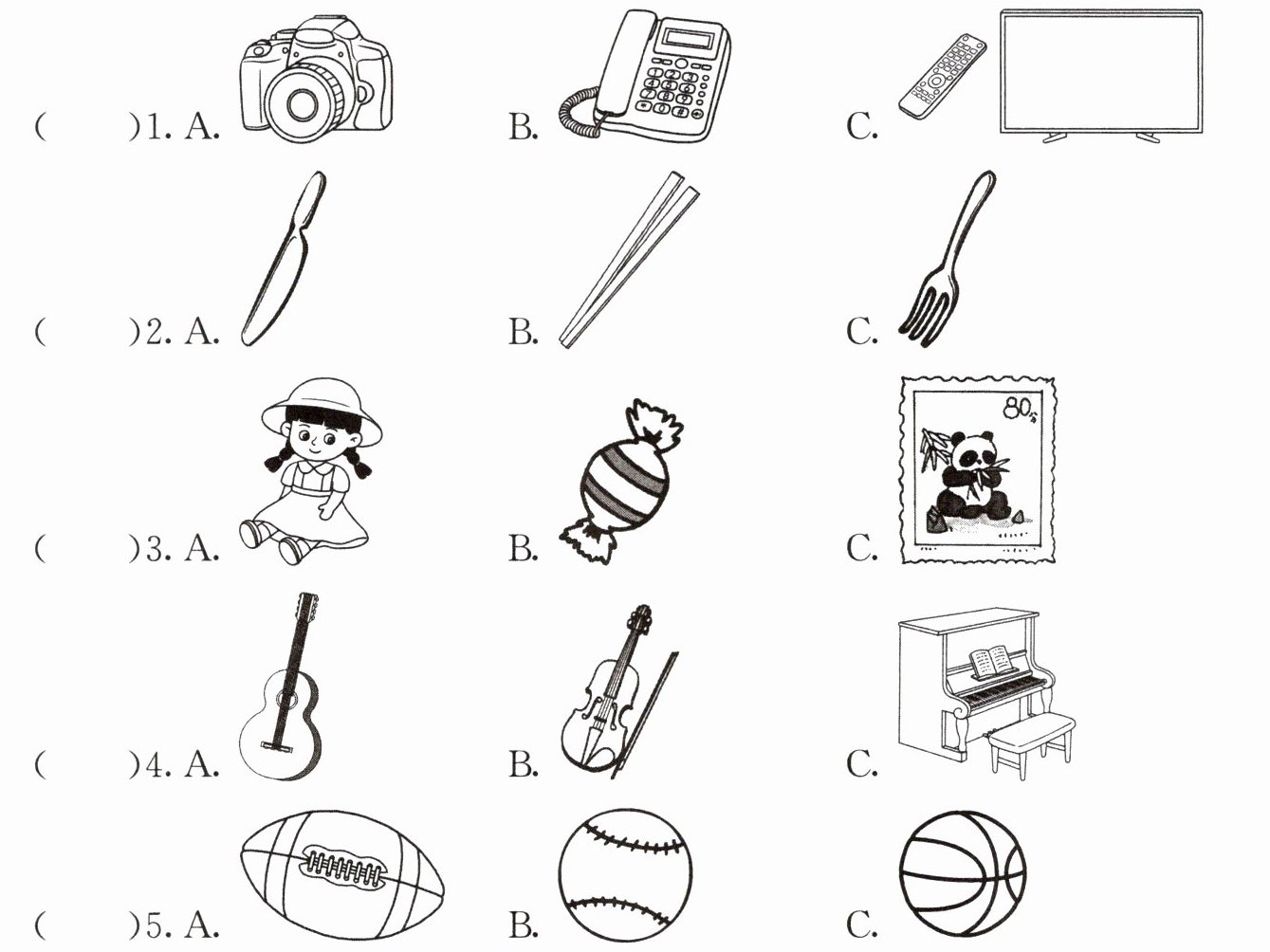 一、听句子,选图片。请选出与你听到的句子意思相符的图片,并将答案的字母标号填在括号中。每个句子读两遍。