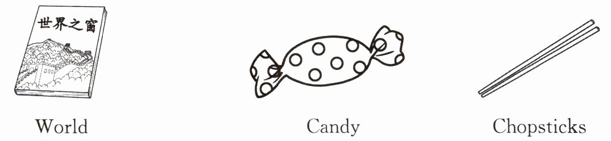 二、词语分类。请将下列词语按照图文进行分类,并将答案的字母标号填在括号中。
