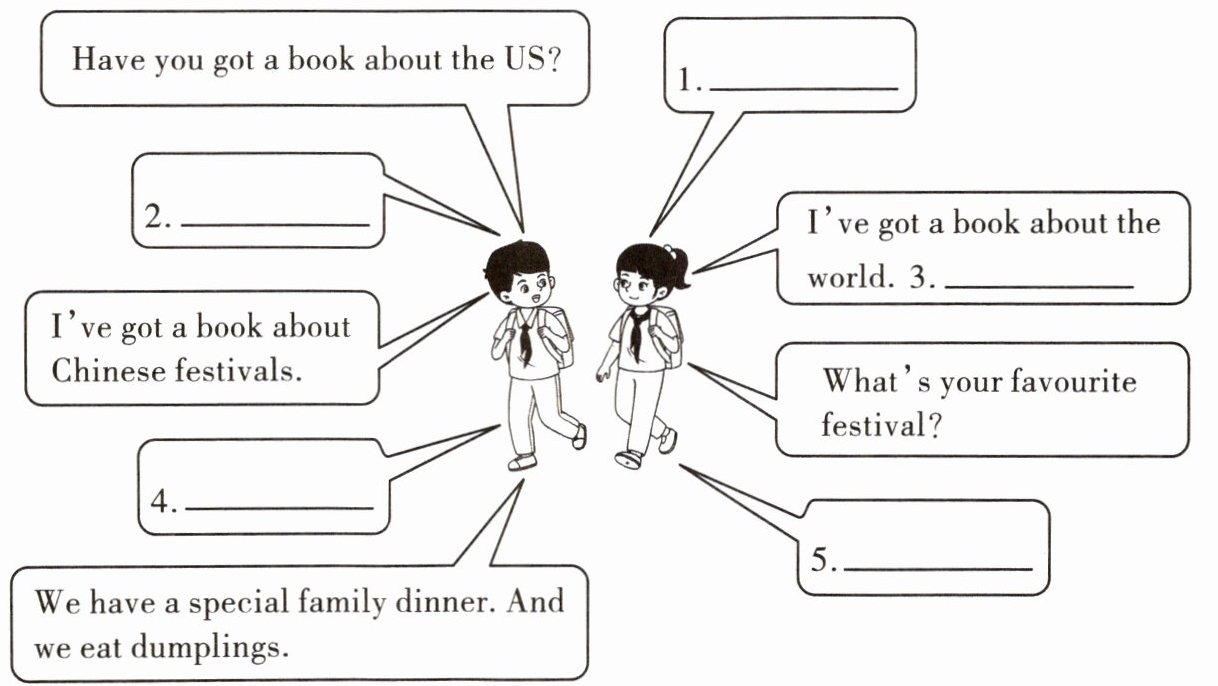 B. 补全对话。从方框中选择恰当的句子补全对话,并将答案的字母标号填在相应的横线上。