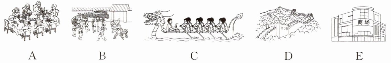 )5. We can see the dragon boat race and we eat zongzi. People hold some activities in memory(纪念)of Qu Yuan.