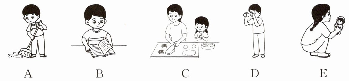 二、图文匹配。请根据下列描述选择与其意思相符的图片,并将答案的字母标号填在括号中。