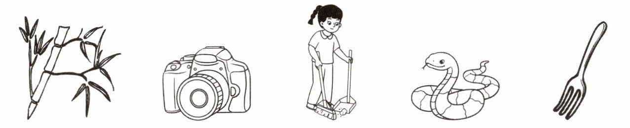)A. clean B. bamboo C. snake D. fork E. camera