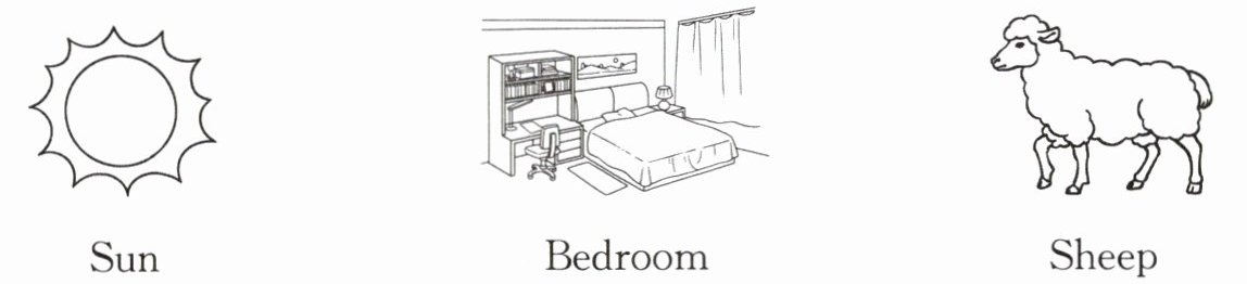 A. an animal B. rise in the east C. a room for sleeping D. hot E. bed F. a star G. in the sky H. in a house I. white J. eat grass