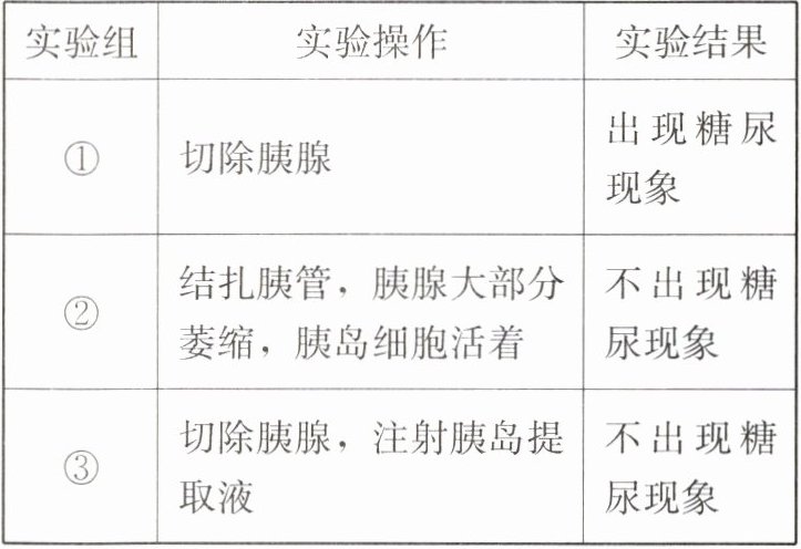 |②|结扎胰管,胰腺大部分萎缩,胰岛细胞活着|不出现糖尿现象|