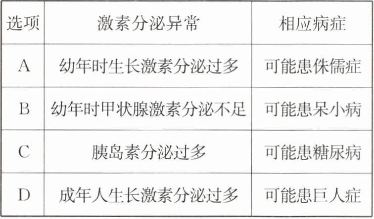 7. 人体内的激素含量少,作用大,一旦分泌异常就可能引发疾病。下列关于激素分泌异常与相关病症对应正确的是( )。