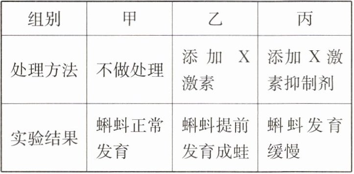 6. 某生物兴趣小组为探究$X$激素的功能,利用蝌蚪进行了如下实验。下列分析错误的是( )。