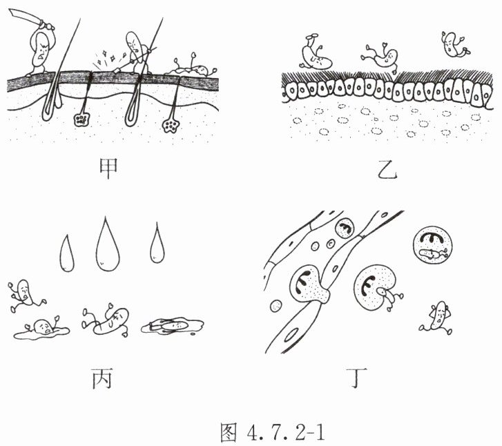(1)图4.7.2-1中甲、乙、丙、丁,属于第一道防线的是______。