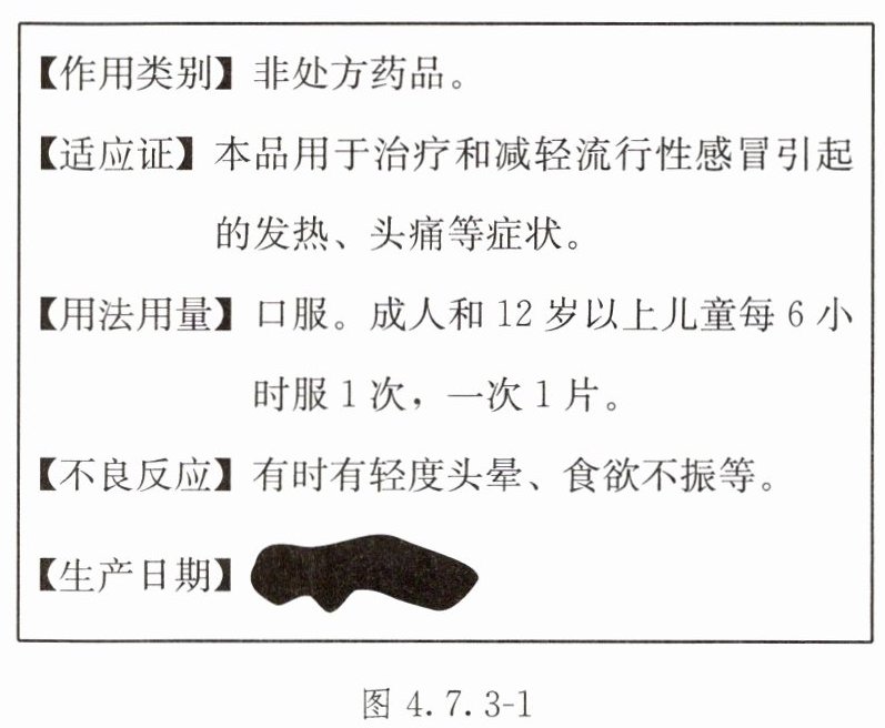 2. 某同学患流行性感冒后,在家中找到了一瓶治疗感冒的药物,他看了瓶上的标签(部分内容如图 4.7.3 - 1 所示),认为此药不宜服用。最可能的原因是( )。