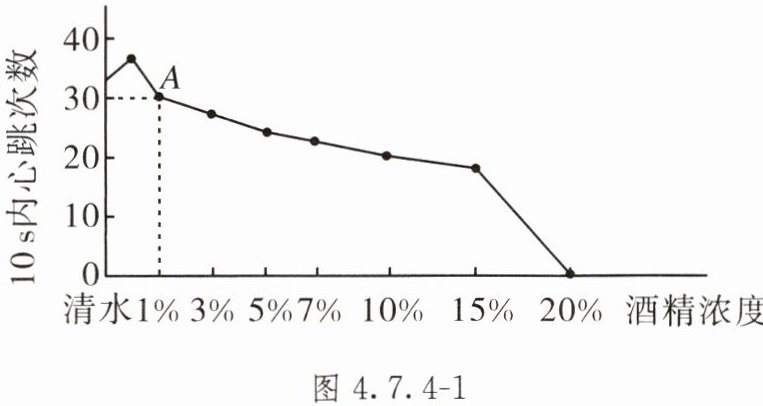 5. 在“酒精对水蚤心率的影响”实验中,兴趣小组将得到的数据绘成如图4.7.4 - 1所示的曲线。下列相关叙述错误的是( )。
