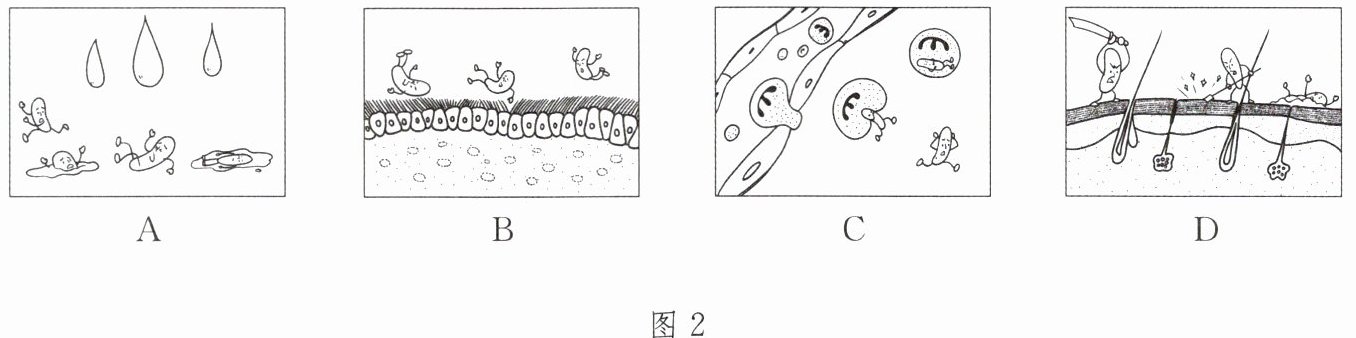 17. 图 2 表示的是人体的三道防线,请据图回答问题。