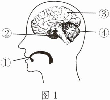 5. 宋代诗人杨万里在《闲居初夏午睡起》中写道:“梅子留酸软齿牙,芭蕉分绿与窗纱。”品读这句诗能让人有一种酸酸的感觉。图 1 中能产生“酸酸的”感觉的部位是( )。