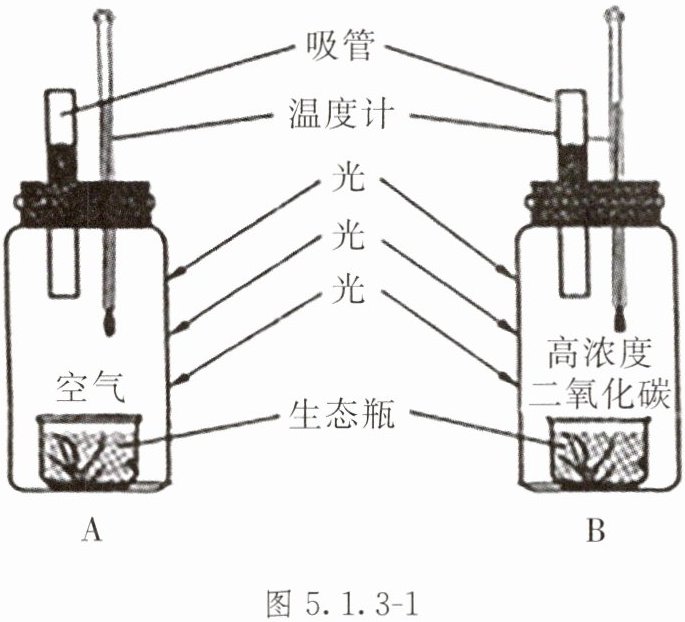 14. 图 5.1.3 - 1 是某中学生物兴趣小组设计的模拟生物圈“温室效应”的实验装置。据图请完成下列各题。