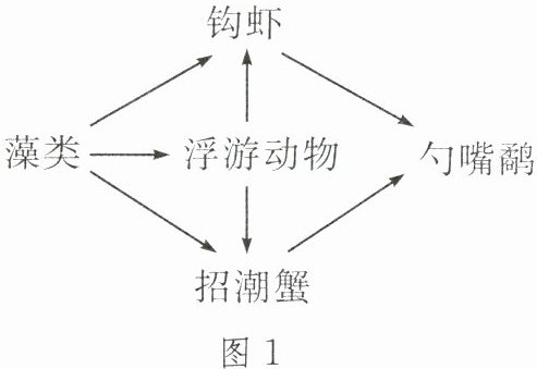 10. 红树林是濒危动物勺嘴鹬迁徙途中的“能量补给站”之一。图1为勺嘴鹬在红树林中的食物网,下列有关该食物网的说法正确的是( )。