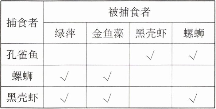 (3)某同学通过观察生态瓶中生物的捕食关系进行了如上表所示的记录。