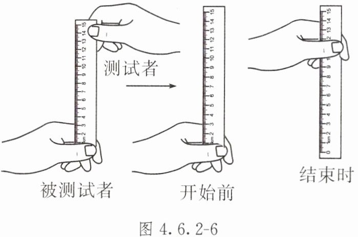 10. 为比较不同人的反应速度,同学们做了图 4.6.2 - 6 所示的实验,下列相关叙述错误的是( )。