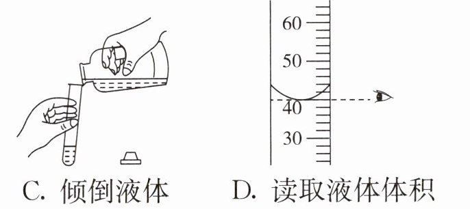 C【解析】量筒常用于量取一定体积的液体,且量筒量取液体体积更精准,量筒量程的选择应遵循“大而近”的原则,故量取40.0 mL溶液应选择50 mL量筒。