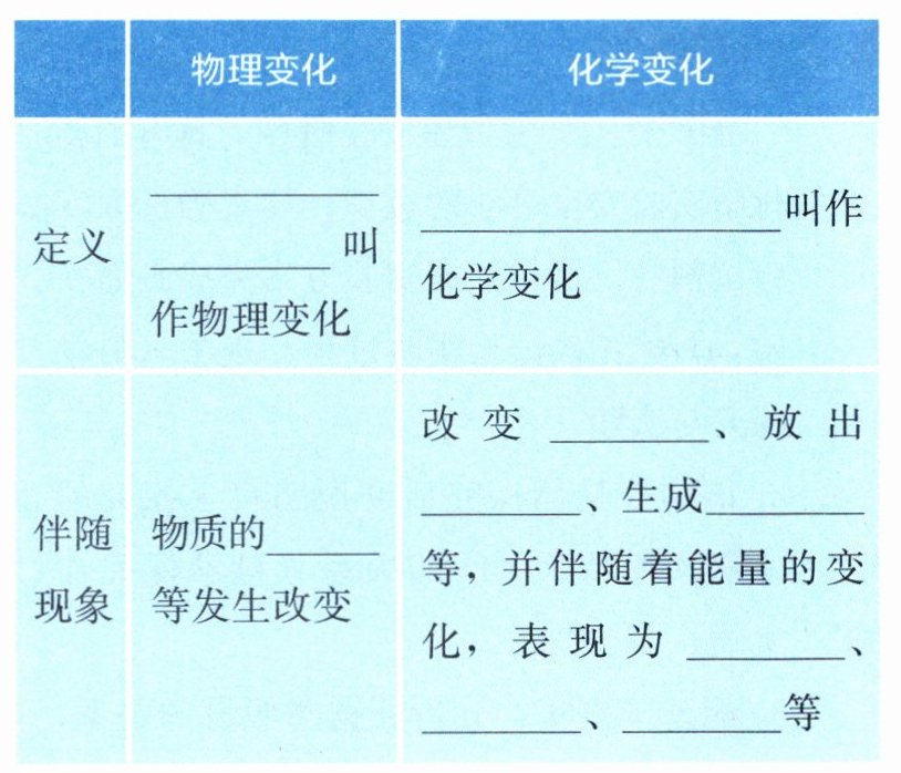 没有生成新物质的变化 生成新物质的变化 形态 颜色 气体 沉淀 放热 吸热 发光