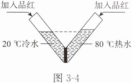 ·跟踪练习1 V形管的底部被封隔成左右两部分(如图3-4所示),用以探究水的温度对微粒运动速率的影响。