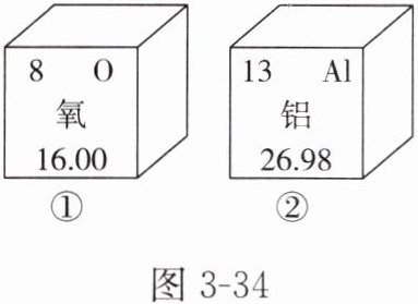 元素周期表是学习和研究化学的重要工具。图 3 - 34 中①、②为氧元素、铝元素在元素周期表中的信息示意图,A、B、C、D 是四种粒子的结构示意图。请分析并回答问题。