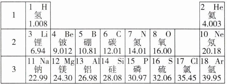 7. (2024·乐山)元素周期表是学习和研究化学的重要工具。元素周期表的每一个横行叫作一个周期,下图是元素周期表中前三周期元素的部分信息。
