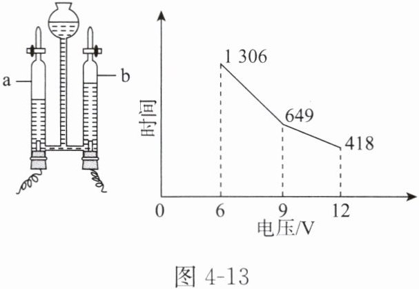 3. 为探究不同电压对电解水速率的影响,某同学用图 4 - 13 所示装置进行多次实验,并记录不同电压下生成 $ 20 mL $ 氢气所需时间。下列分析正确的是(