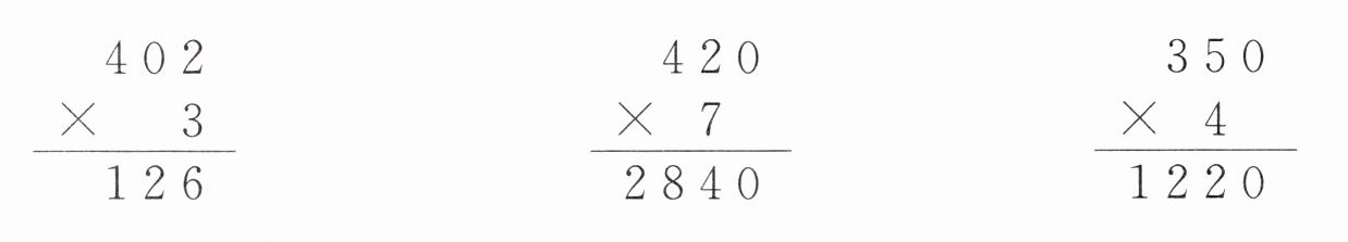改正:$\begin{array}{r}402\\×\ \ \ 3\\\hline1206\end{array}$