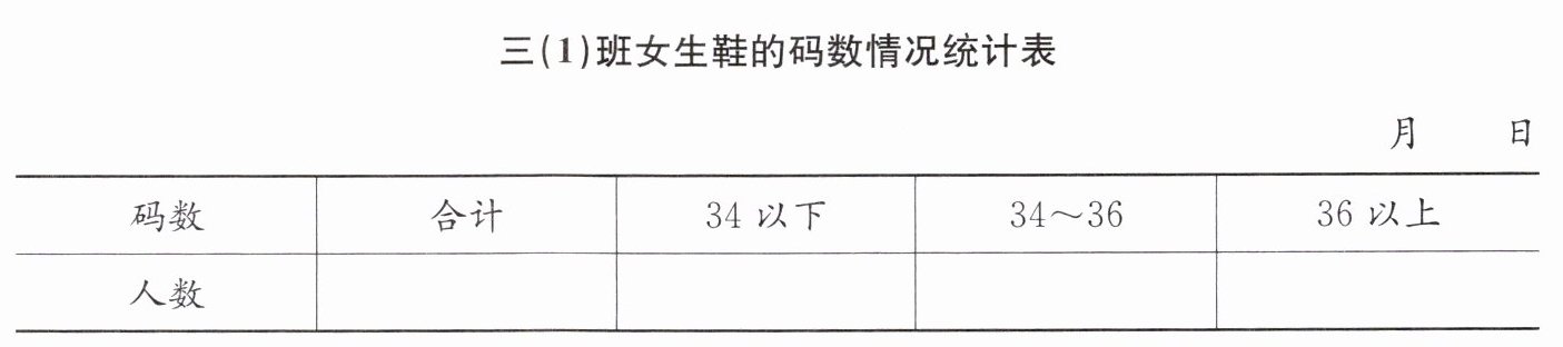 3. 王老师收集了三(1)班女生鞋的码数如下: