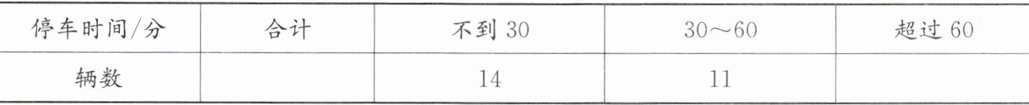 1. 下面是红枫停车场某天下午$3:00\sim5:00$机动车辆停车情况记录。