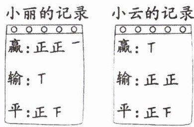 4. 小丽和小云玩“石头、剪刀、布”的游戏。两人一共玩了$20$次,观察她们的记录,(