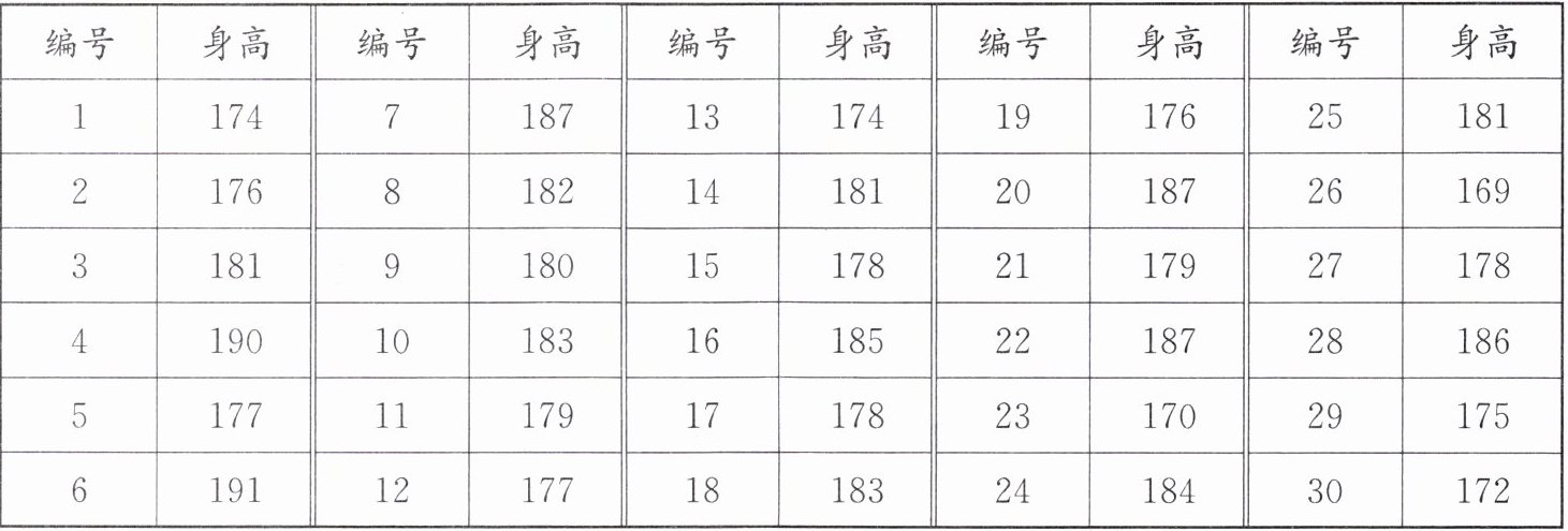 3. 学校篮球队$30$名队员身高情况如下表。(单位:厘米)