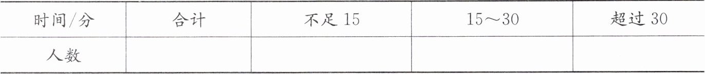 )人用的时间比他多。(3) 不足$15$分和超过$30$分的一共有(