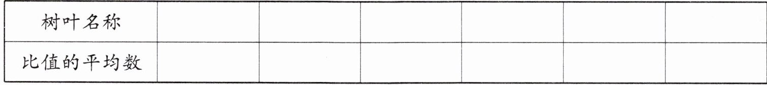 1. 采集同一种树叶 10 片,量出每一片树叶的长和宽,算出长与宽的比值(得数保留一位小数),填入下表。